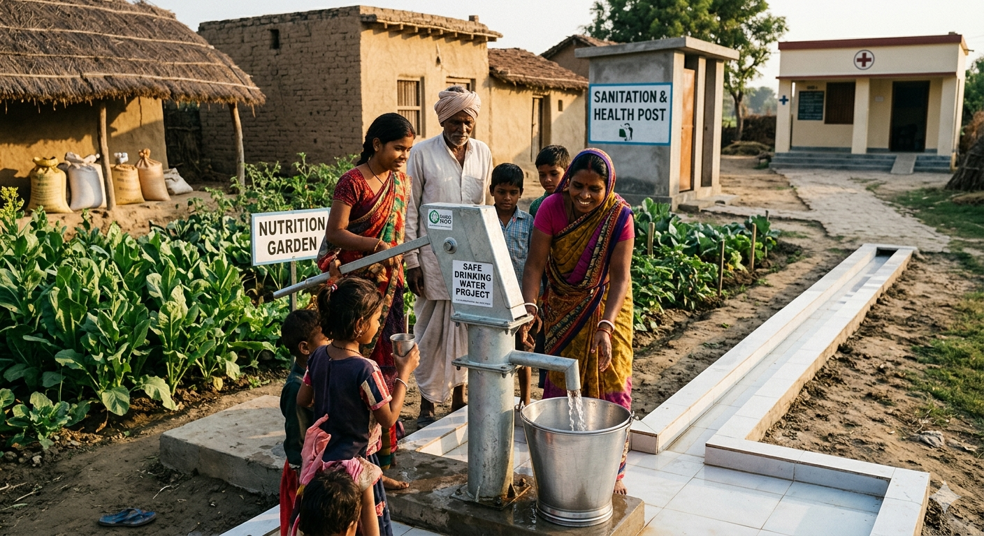 Eradicating hunger, poverty and malnutrition, promoting preventive health care and sanitation and making available safe drinking water.