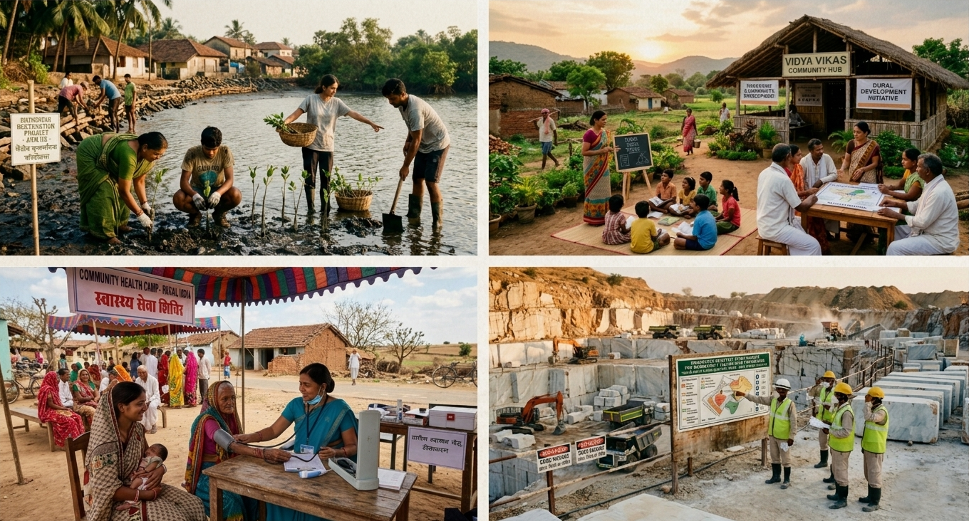 Mining wastelands are transformed into lush green landscapes through large-scale planation drives.